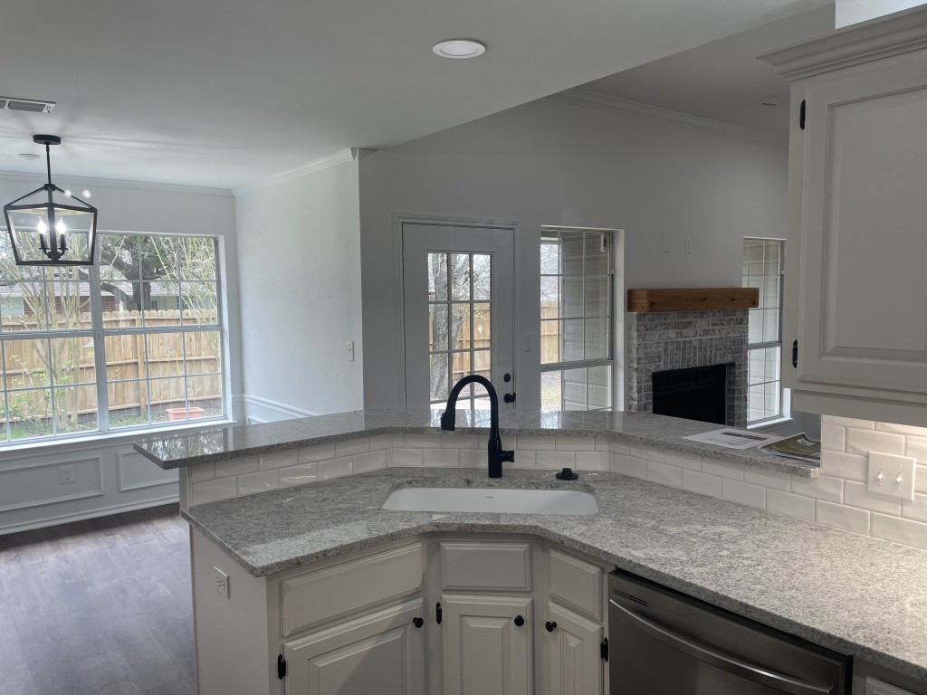 Complete remodel of this home in the very nice and popular Waterton subdivision in Whitehouse. This house is a 4 bed 2 bath on a corner lot. New mahogany wood door, all new luxury vinyl planks, new carpet in bedrooms, lime wash fireplace with a new custom rough cedar mantle, granite counters, new procelain sink, new appliances, new hardware, all new lighting fixtures, interior painted Sherwin Williams Snowbound and pure white on the trim. Exterior trim has been painted with a Sherwin Williams "Anonymous" and yard has been landscaped. This property is priced to sale at $329,900 / $172 per sq ft, a very fair price for a remodeled home in Whitehouse ISD. We will offer a $2,500 credit for 2" faux blinds for interior windows if we can make a deal. So if your interested go to the home page and click on "Lets make a deal", and lets do just that, lets make a deal! |