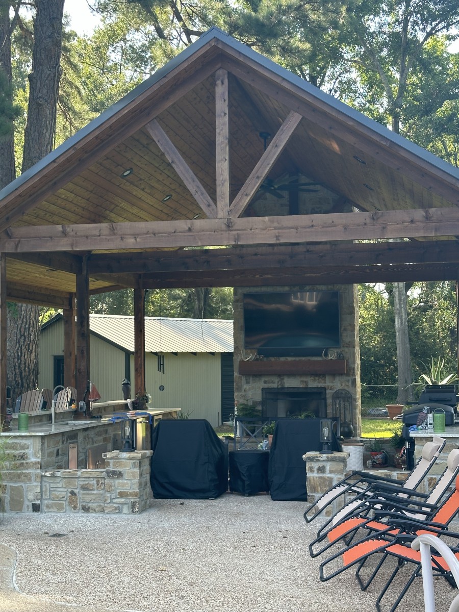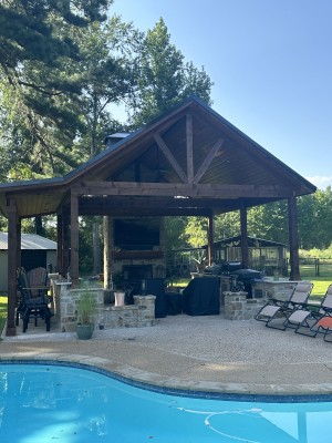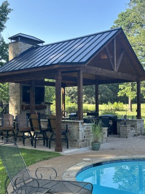 Amazing outdoor pavillion with 18' tall stone fireplace. Great project for great people!